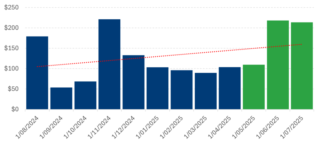 Following the ceasefire between the two countries, however, pricing has come back down. You can see in the most recent weeks in the chart below how responsive Australian diesel pricing has been to these disruptions, so the outlook over the next few months is essentially dependent on political developments in the Middle East.