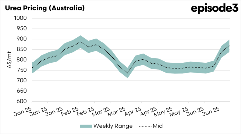 Urea pricing (Australia) Jan 2025 to June 2025 (AUD)