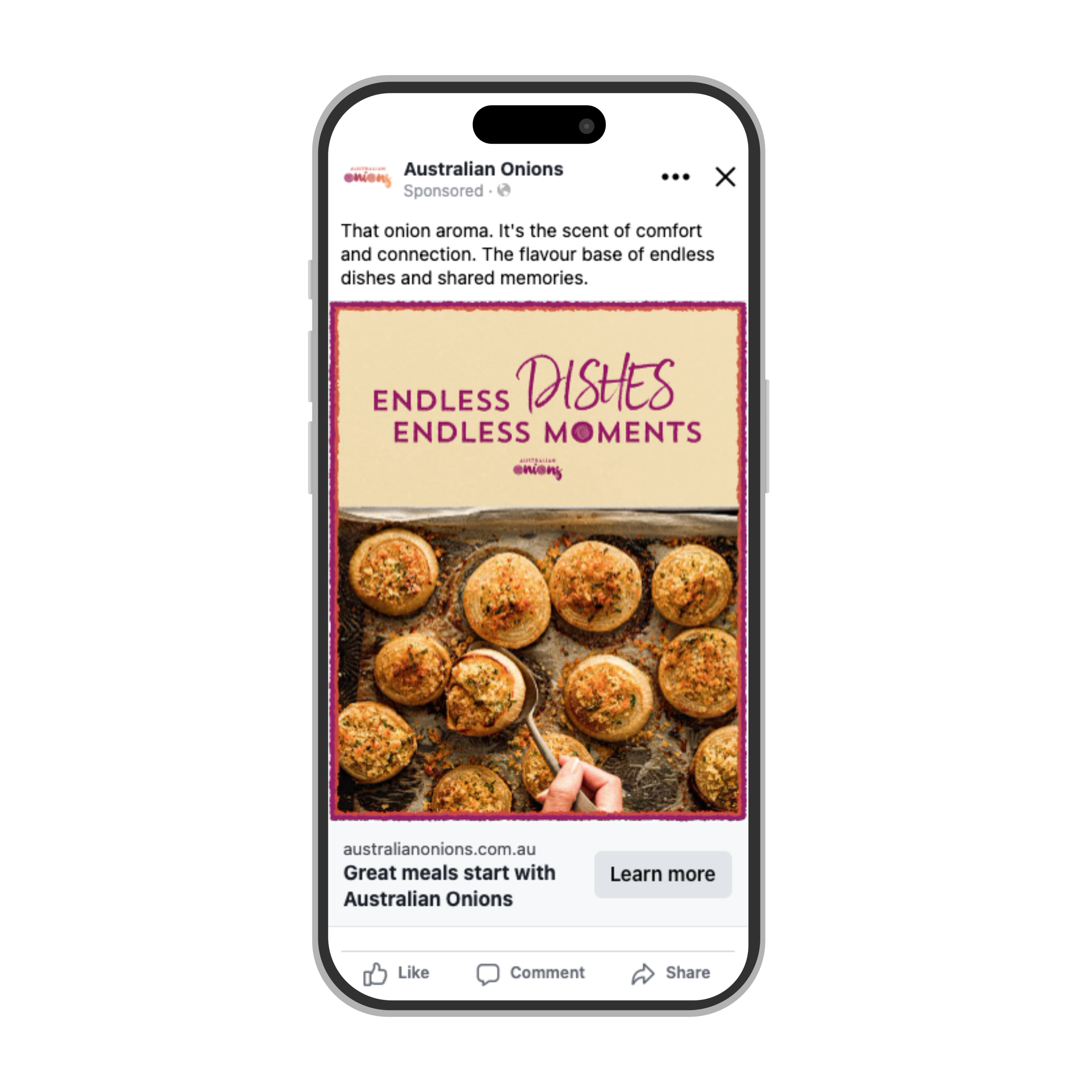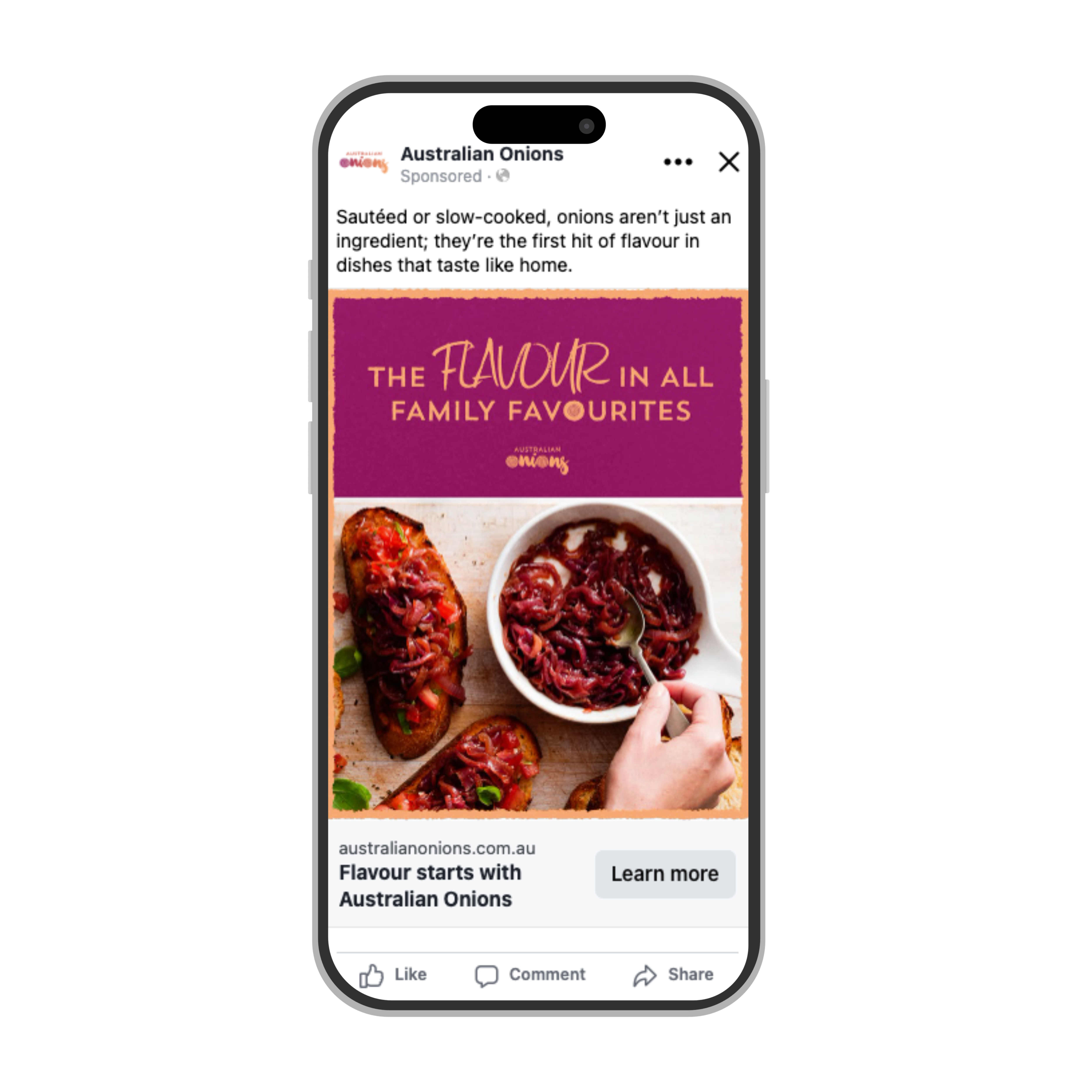 The overarching objective is to drive consumer demand by inspiring Australians to consume more onions, more often. The campaign aims to significantly increase domestic consumption by continuing to position Australian onions as the first ingredient in every meal, building a flavourful foundation to every dish.