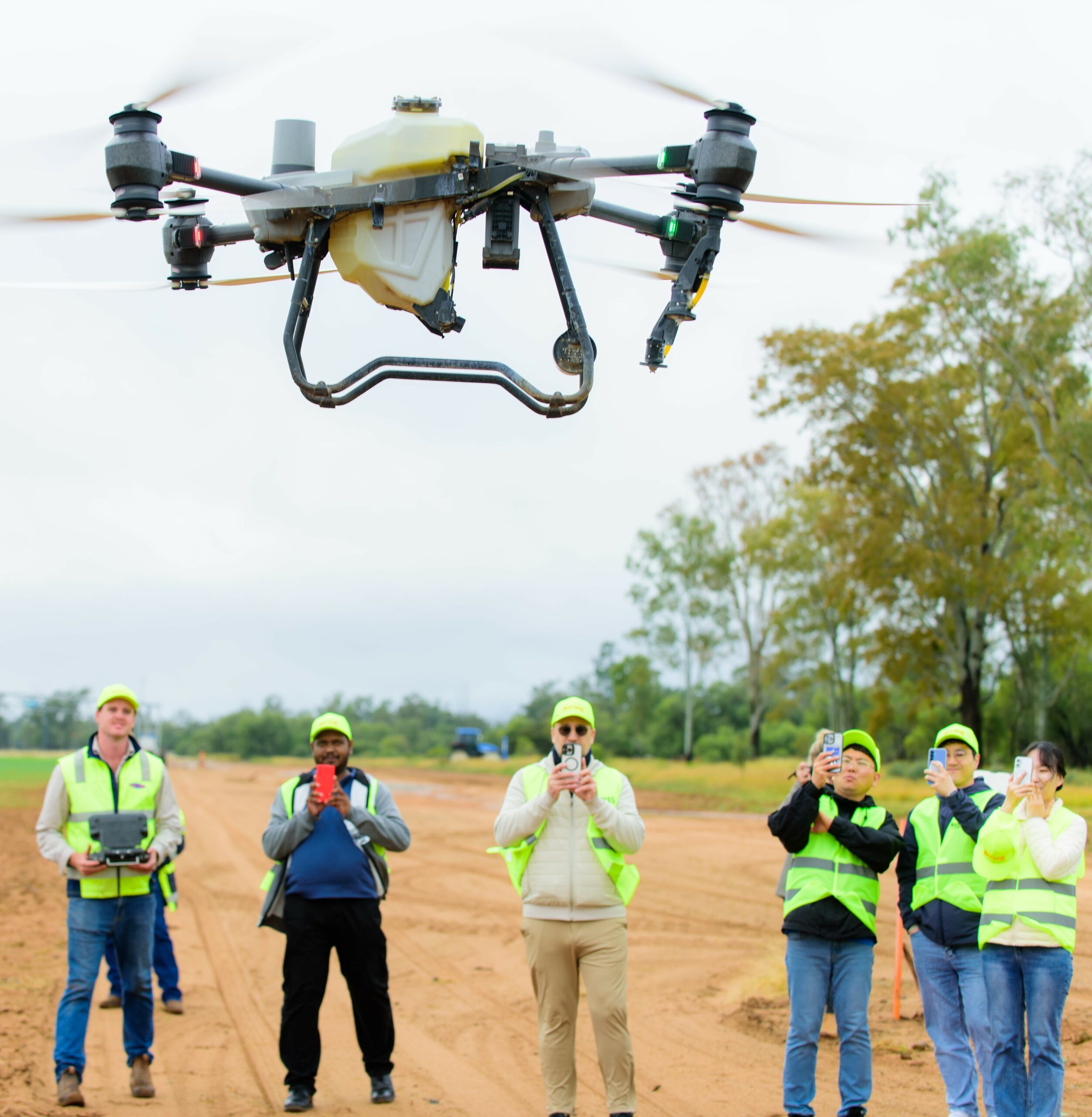 Delegates toured the on-site processing facility where garlic is prepared for market, visited onion fields, and viewed specialised harvesting machinery. The visit also featured a drone spraying demonstration, offering international buyers a firsthand look at the innovative technology being adopted by Australian growers.