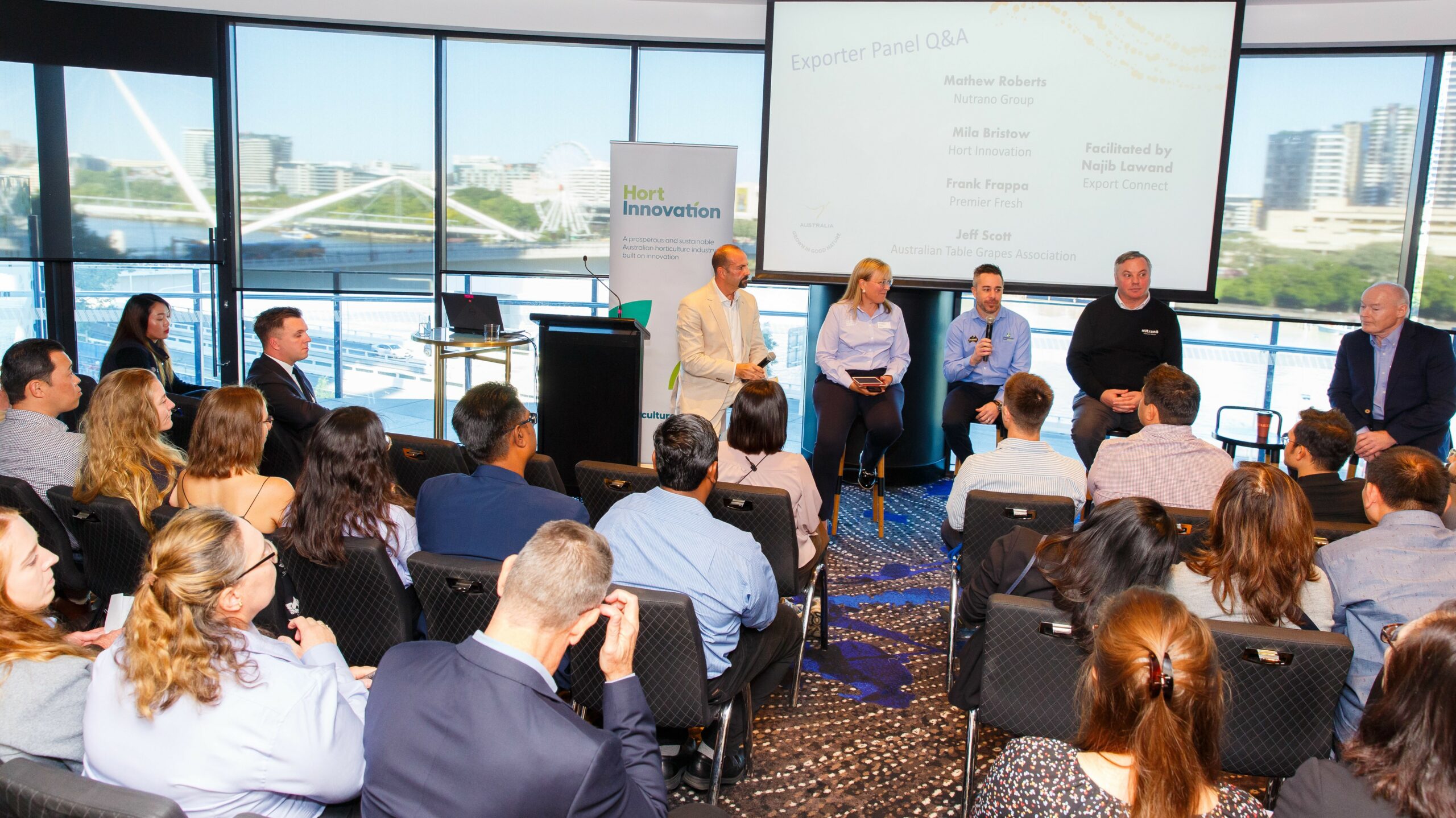 The Knowledge Exchange Breakfast Forum included three presentations, including ‘How Australian fresh produce/ horticulture sector connect with shoppers and activate our commodities in the Australian marketplace’, presented by Ben Leigh, D2C; ‘Australian table grapes: reaching new markets’, presented by Jesse White, Australian Table Grape Association; and ‘Australia’s fresh credentials/unique selling proposition for Australian fresh produce’, presented by Najib Lawand, Export Connect. The forum also concluded with an exporter Q&A panel, where three critical topics for fresh produce was discussed – product, supply chain and promotions.