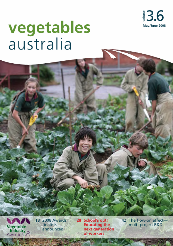 Potatoes Australia April 20081 April 2008Vegenotes Issue #615 May 2008 Vegetables Australia May/June 2008 1 May 2008 Attachment Download FileHome / Vegetables Australia May/June 2008 2008 Awards finalists announced School’s out! Educating the next generation of workers The flow-on effect – multi-project R&D Share